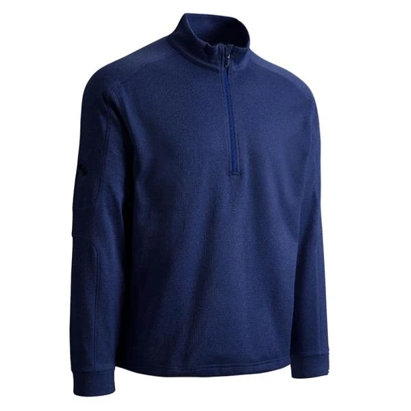 A quarter-zip waffle knit sweater featuring Swing Tech technology allowing the golfer to move freely in all directions, with thermal properties that keep the warmth in on chilly golf days and has the Callaway Tour logo on the right sleeve.