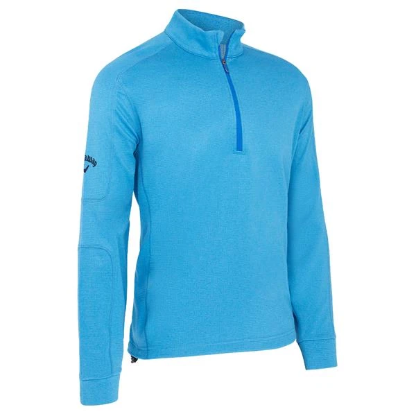 A quarter-zip waffle knit sweater featuring Swing Tech technology allowing the golfer to move freely in all directions, with thermal properties that keep the warmth in on chilly golf days and has the Callaway Tour logo on the right sleeve.