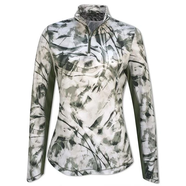 Designed with Nature Print with green and white brush stroke pattern featuring a zip closure. Created with Callaway’s Opti-Dri stretch fabric and mesh ventilation.