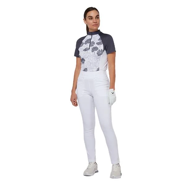 A floral print featuring a cool cutout effect brings eye-catching modern style to this sleek women’s golf shirt from Callaway. Great for warm and sunny days out on the course, the women’s golf top has moisture-wicking technology to help manage sweat. It’s crafted from a soft jersey knit for impressive comfort, and it offers a hint of stretch to allow for a full range of motion. The curved hem features side slits for extra ease of movement. Made from 48% recycled polyester, it’s a top golfers can wear with peace of mind.